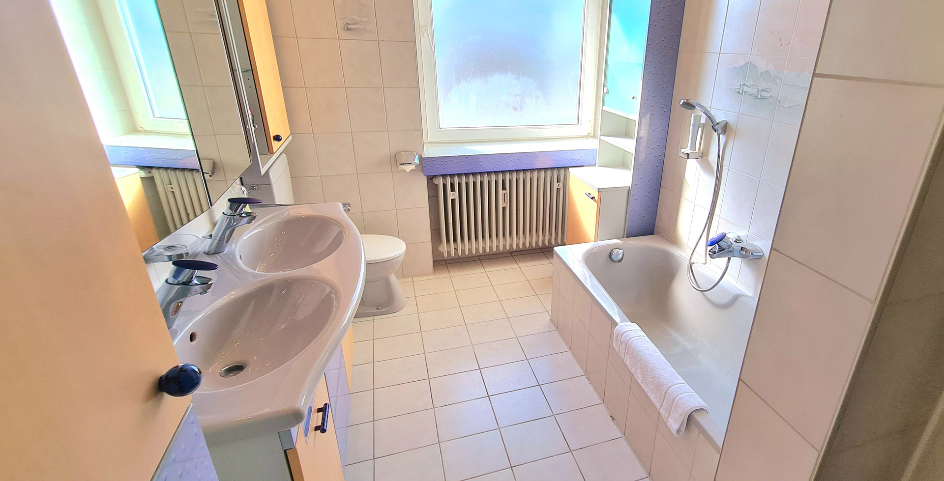 Badezimmer mit Badewanne, Badewanne und WC