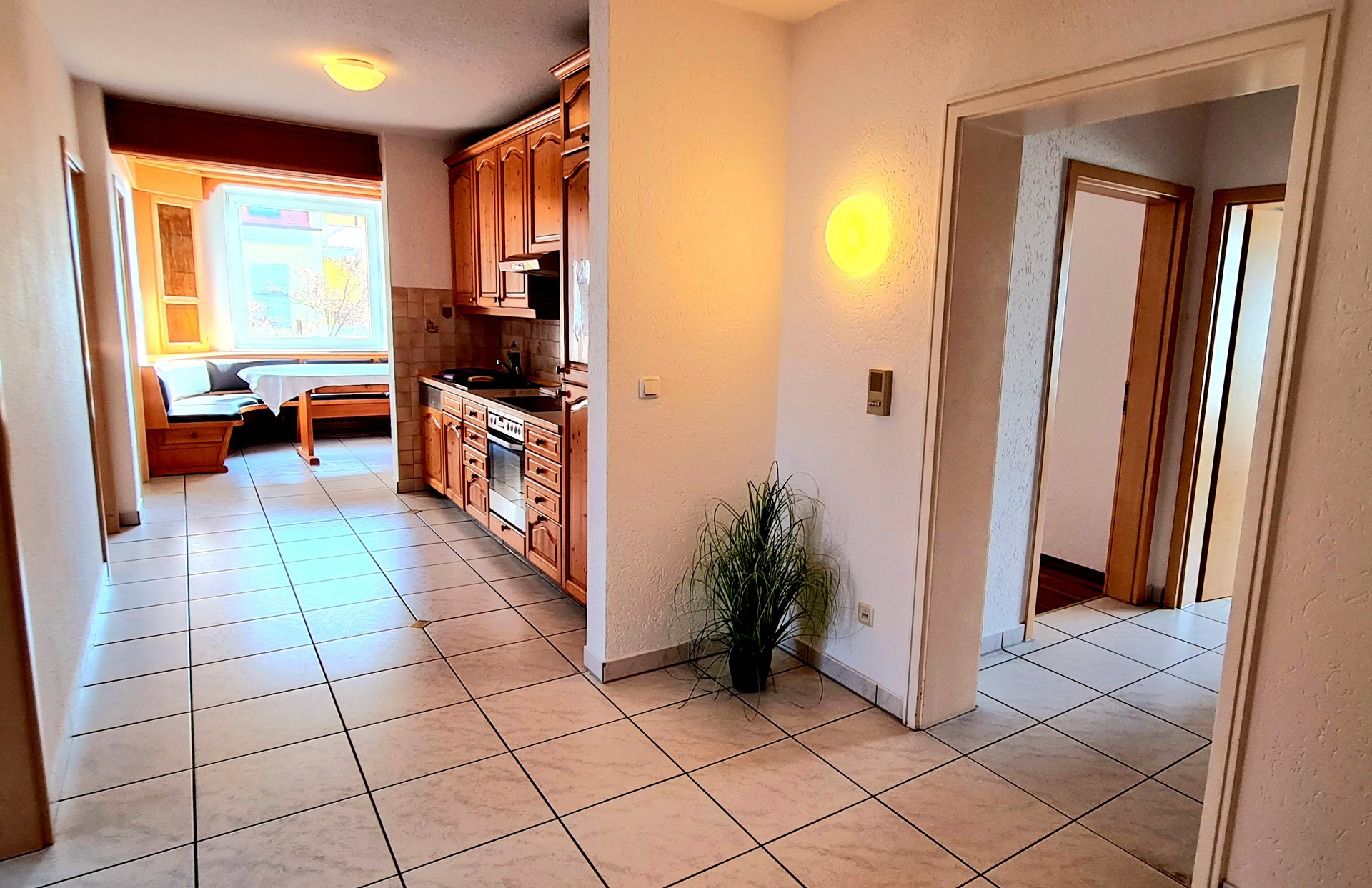 Unser 4-Zimmer Apartment bietet viel Platz für Familien, Freunde oder Teams, die gemeinsam reisen und sich wohlfühlen möchten. Jeder der vier Räume verfügt über ein Doppelbett und bietet angenehme Rückzugsmöglichkeiten für bis zu 8 Gäste. Zwei Balkone laden zum Entspannen ein. Die praktische Küchenzeile sowie eine gemütliche Sitzecke mit Esstisch sorgen für zusätzlichen Komfort - ideal für Mahlzeiten oder gesellige Abende. Das moderne Badezimmer ist mit Dusche, Badewanne, zwei Waschbecken, Föhn und kostenfreien Pflegeartikeln ausgestattet. Perfekt für längere Aufenthalte mit mehr Raum und Flexibilität im Hotel Krone.