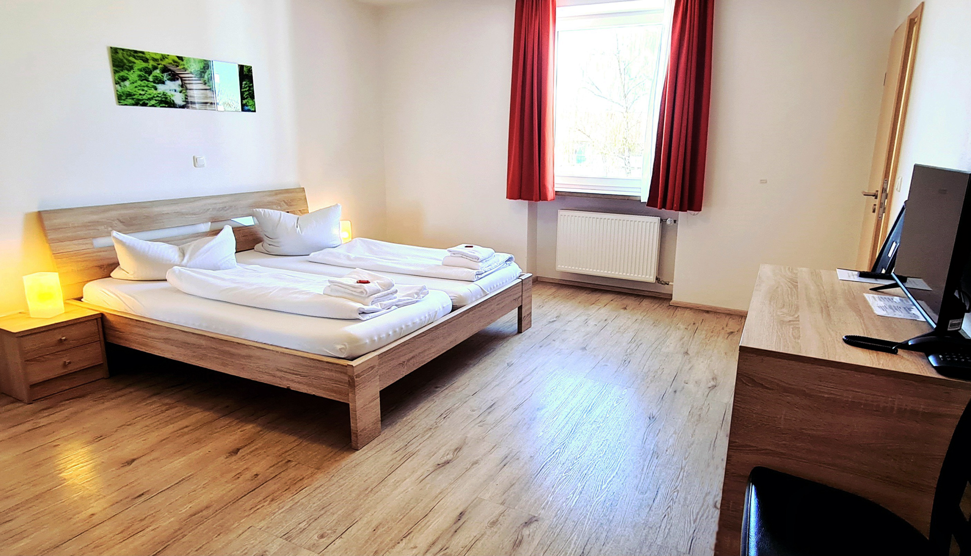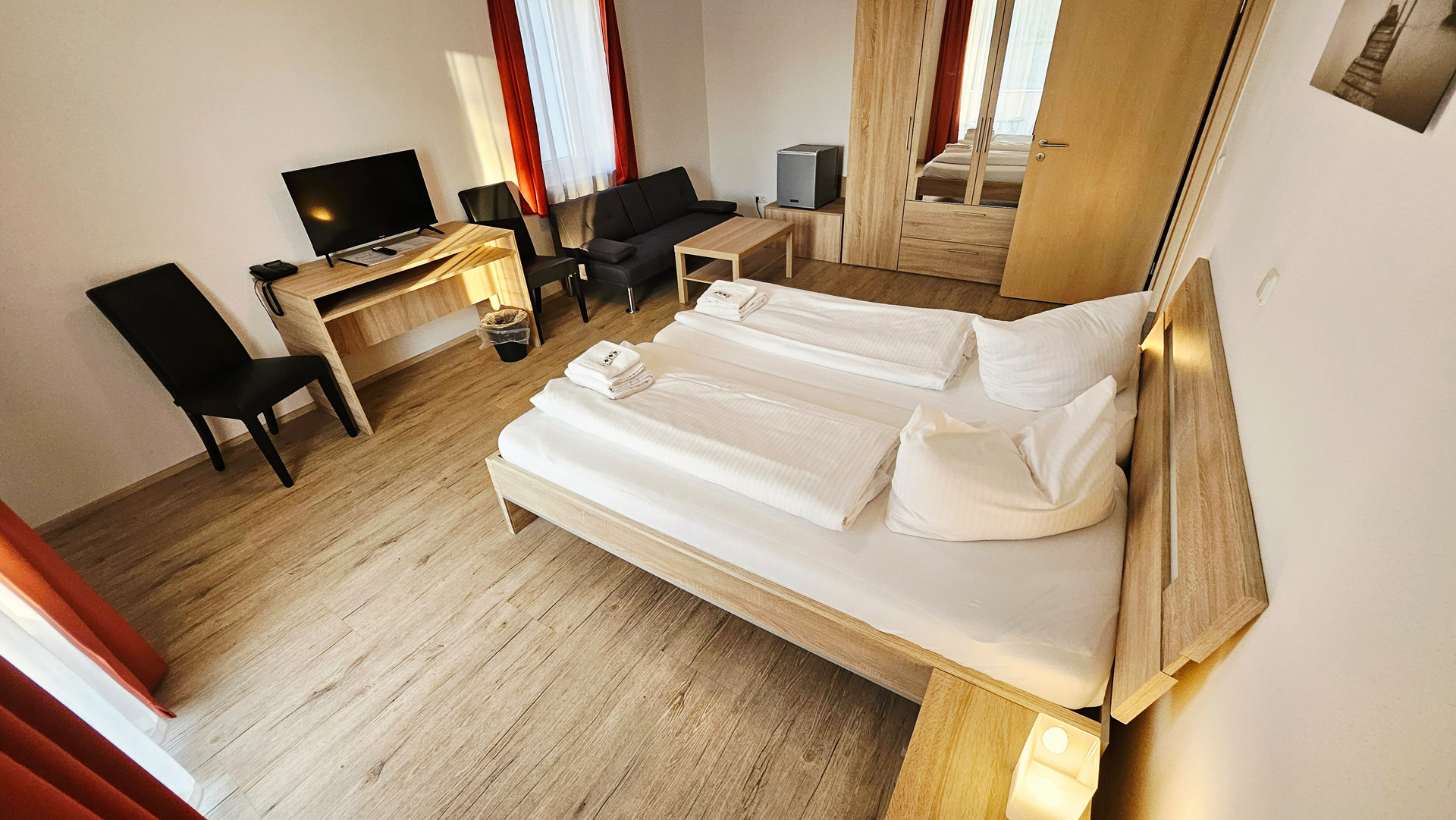 Unsere Comfort Doppelzimmer bieten Ihnen etwas mehr Raum für Entspannung - ideal für einen angenehmen Aufenthalt zu zweit oder auch alleine. Ausgestattet mit einem Doppelbett, einem größeren Badezimmer, mit Dusche/WC und Föhn, kostenfreien Pflegeartikeln, TV, kleinem Schreibtisch und einem praktischen Kühlschrank, vereinen sie Funktionalität und Gemütlichkeit. Perfekt für alle, die ein bisschen mehr Komfort im Hotel Krone genießen möchten.